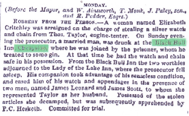 | A portion of an article about the father of Aldermam Walmsley, and his ownership of the Black Bull Inn. Preston Chronicle 5th February 1870 |